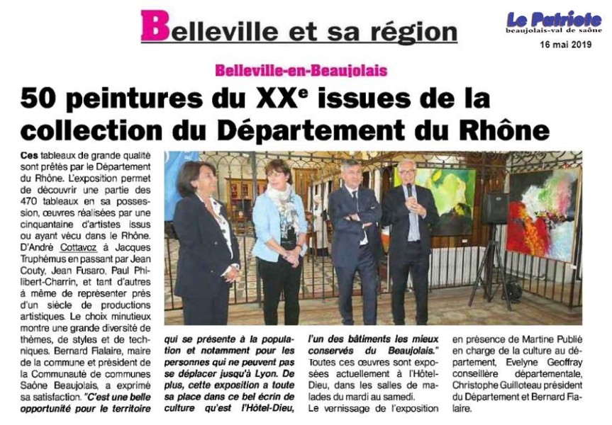 Belleville-en-Beaujolais 50 peintures du XXe issues de la collection du Département du Rhône Ces tableaux de grande qualité sont prêtés par le Département du Rhône. L’exposition permet de découvrir une partie des 470 tableaux en sa possession, œuvres réalisées par une cinquantaine
